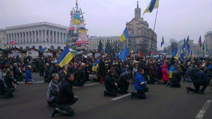 Тут видимо, что-то национальное, с этими коленями. Вообще у европейцев не принято стоять на коленях. На колени европеец встаёт только перед Богом, ибо "раб Божий". Но "Божий" значит "больше ничей", то есть свободный человек. Украинцев же так и тянет стоять на коленях друг перед другом и ставить на колени других.